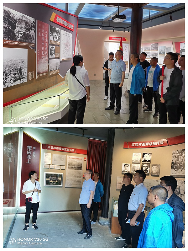 在紅軍城大家先后參觀了川陜省委、川陜省蘇維埃政府、西北革命軍事委員會和紅四方面軍總部等川陜蘇區數十個黨政軍主要領導機關遺址,展區陳列了徐向前、李先念等革命先驅在這里揮師作戰的印跡,展示了人民軍隊歷史上最早最大規模的婦女武裝——紅軍婦女獨立師、最早的水兵建制——紅四方面軍總指揮部直屬水兵連、最大建制的紅色童子團——少共國際師等革命事跡,彰顯了紅四方面軍“智勇堅定,排難創新,團結奮斗,不勝不休”的偉大革命精神。