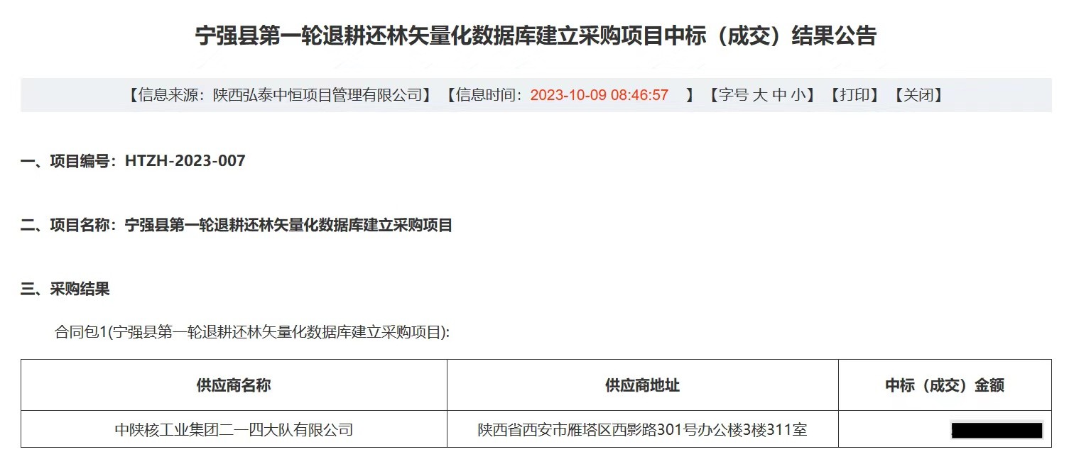 喜訊!公司成功中標《寧強縣第一輪退耕還林矢量化數據庫建立采購項目》