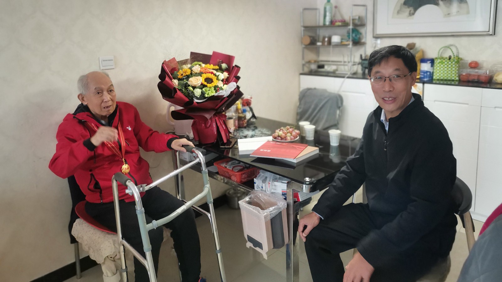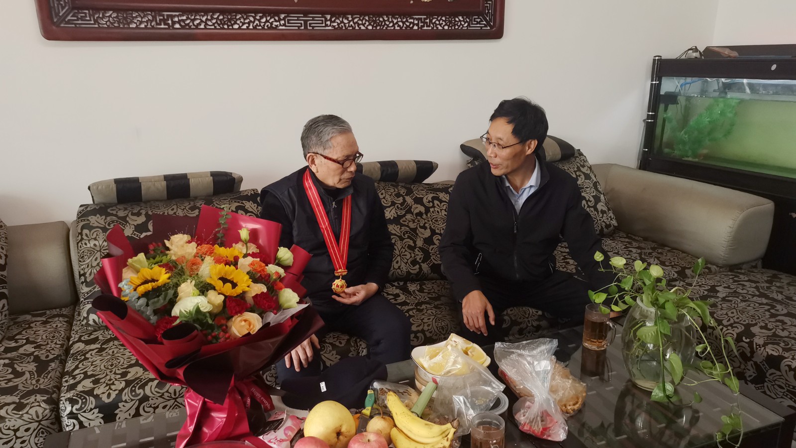 公司黨委書記、董事長鄧盛波前往在西安居住的兩位老同志家中走訪慰問,與老同志熱情親切交談,回憶過去走過的崢嶸歲月。鄧盛波首先向老同志們說明了公司的發展情況,詳細詢問了老同志們的身體狀況及生活狀況,并代表公司黨委對他們及老一輩核地質人為核工業事業做出的貢獻表達了誠摯感謝,并囑咐他們保重身體。隨后為他們佩戴了“我國第一顆原子彈爆炸成功60周年紀念章”。