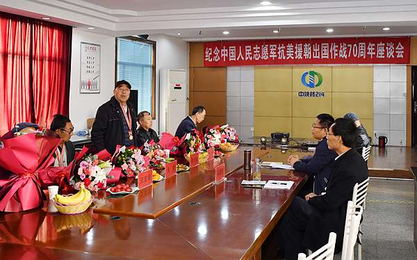 今年是中國人民志愿軍抗美援朝出國作戰(zhàn)70周年,為大力弘揚(yáng)以愛國主義和革命英雄主義為核心的抗美援朝精神,10月23日上午,公司在城固基地舉辦抗美援朝出國作戰(zhàn)70周年座談會(huì),邀請四名參加抗美援朝出國作戰(zhàn)的老戰(zhàn)士及家屬參加。座談會(huì)由公司副總經(jīng)理、工會(huì)主席董興武同志主持。