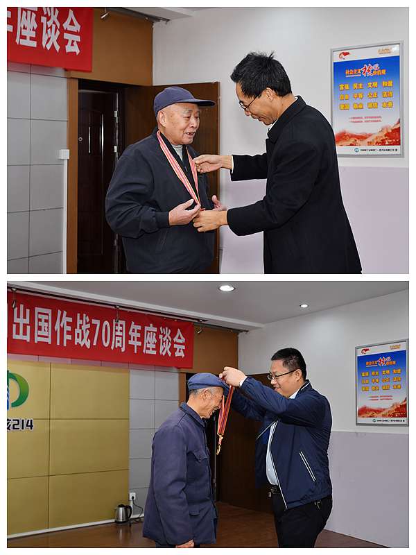 1950年10月,英雄的中國人民志愿軍將士肩負(fù)民族的期望,高舉保家衛(wèi)國、反抗侵略的正義旗幟,雄赳赳,氣昂昂,跨過鴨綠江,舍生忘死的浴血奮戰(zhàn),贏得了抗美援朝戰(zhàn)爭的偉大勝利,建立了不朽的歷史功勛。公司黨委書記、董事長鄧盛波和副總經(jīng)理、工會(huì)主席董興武親自為四名老戰(zhàn)士們佩戴了中國人民志愿軍抗美援朝出國作戰(zhàn)70周年紀(jì)念勛章,并送上鮮花,感謝這些老戰(zhàn)士為國家和單位作出的貢獻(xiàn)。座談會(huì)上,老戰(zhàn)士講述了當(dāng)年出國作戰(zhàn)的戰(zhàn)斗場面及參與朝鮮和平建設(shè)的經(jīng)歷,并感謝黨和國家的關(guān)心、關(guān)愛。