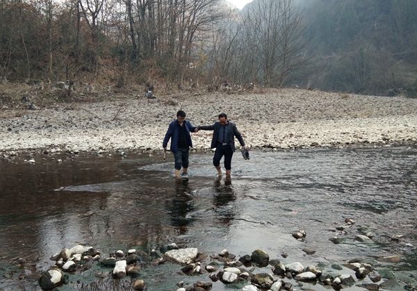 公司王義忠一行到達(dá)項(xiàng)目部駐地后,首先聽取了水工環(huán)院副院長(zhǎng)余鋼對(duì)項(xiàng)目工作情況介紹,該項(xiàng)為水工環(huán)調(diào)查院承擔(dān)了胡家壩鎮(zhèn)政府委的地?zé)嵴{(diào)查市場(chǎng)項(xiàng)目,2017年12月份主要開展了野外地質(zhì)路線調(diào)查、泉水調(diào)查工作。隨后,深入現(xiàn)場(chǎng)對(duì)楊家河壩熱水潭異常點(diǎn)及周圍巖性構(gòu)造,高家山地形、水文、地貌特征進(jìn)行實(shí)地查看。在去黃家灣地?zé)岙惓|c(diǎn)實(shí)地查看過(guò)程中,發(fā)現(xiàn)河對(duì)面有明顯的地?zé)崴惓,F(xiàn)象,由于高速公路阻隔,沒有便捷到達(dá)河對(duì)面的便道,為了不放過(guò)任何一個(gè)異常點(diǎn),王義忠不顧冬季冰冷的河水,依然帶領(lǐng)大家脫下鞋襪涉水過(guò)河,到達(dá)河對(duì)面的地?zé)崴惓|c(diǎn),測(cè)量水溫,查看并測(cè)量構(gòu)造走向展布方向。