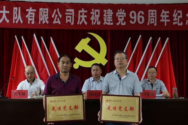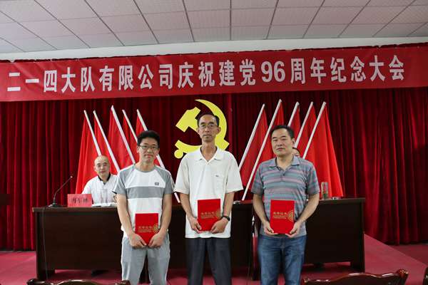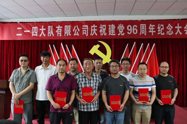 2017年6月30日上午,二一四大隊有限公司隆重召開慶祝建黨96周年紀念暨表彰黨內(nèi)先進大會,公司領導、中層干部、全體黨員及入黨積極分子共60人參加了會議,會議由公司紀委書記、工會主席司金強同志主持。