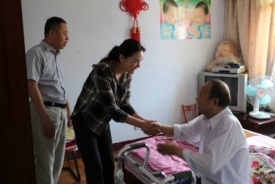 楊霞一行先后走訪慰問龍作仁、黃書成等困難黨員。每到一家,楊霞都走到老黨員的床前、身邊,親切地握著他們的手,詳細詢問他們的身體狀況、家庭情況以及生活中的困難,對他們多年來為黨組織所做貢獻表示感謝,并送上慰問金。鼓勵他們多保重身體,樹立信心,堅持與病魔作斗爭,快樂生活,把上級黨組織的濃濃關懷送到了老黨員們的心坎上。