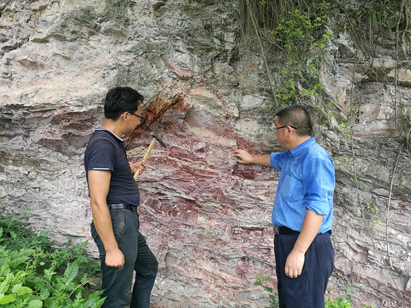 王義忠一行首先對野外地質(zhì)露頭進行了實地查看、追索,并提出指導(dǎo)意見。