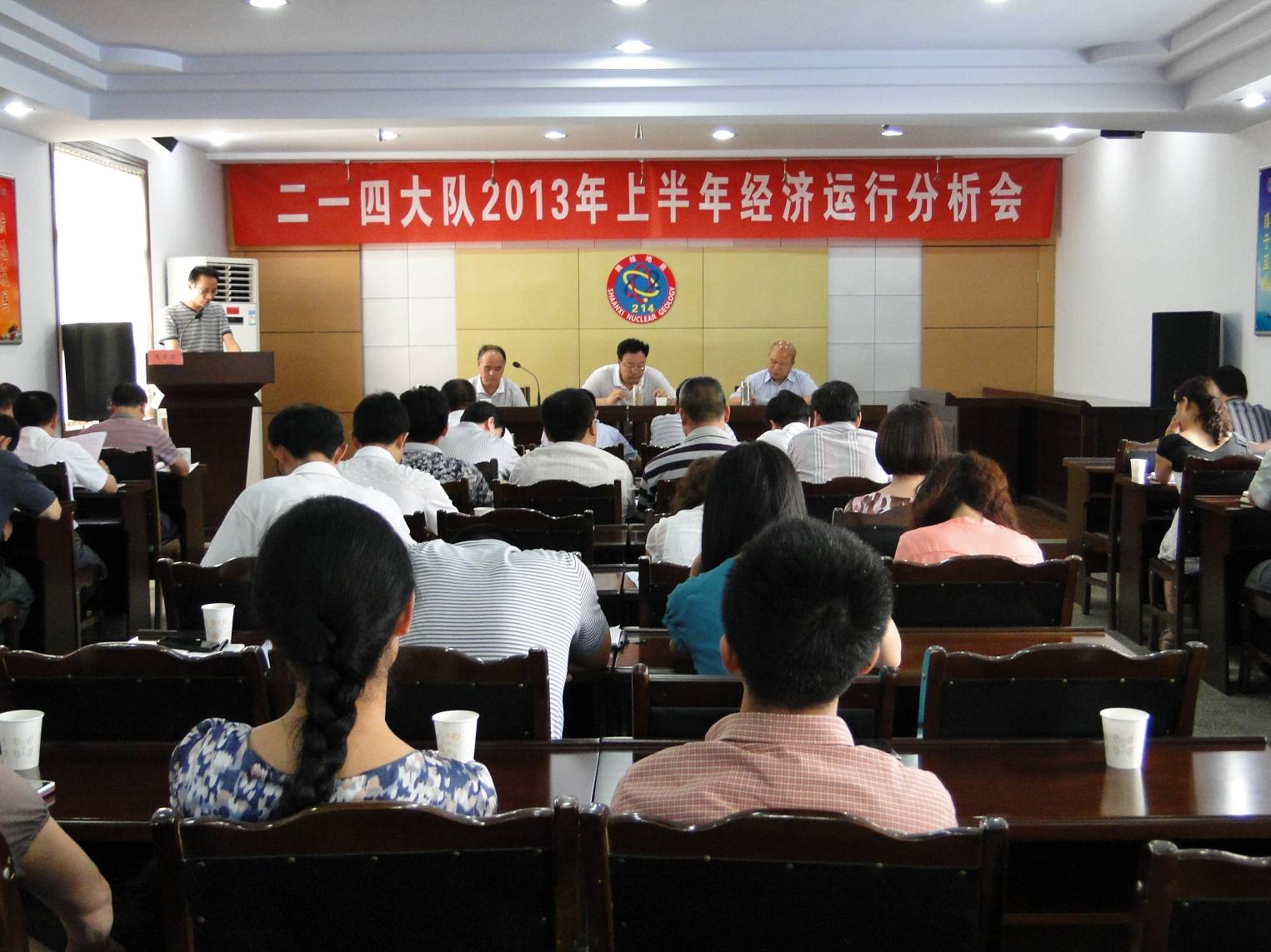 78,大隊召開2013年上半年經濟運行分析會。陜核集團公司副總經理劉建民及經營發展處、財務資產處、安全生產保衛處負責同志出席會議。會議由大隊黨委書記趙建輝、工會主席楊乃讓主持,大隊領導、各經營單位班子成員、機關全體工作人員約80人參加了會議。