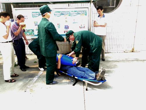 下午4點演練正式開始,隨著模擬火源的點燃,樓內(nèi)有人呼喊“著火了,著火了”,隨后報警鈴聲驟然響起。按照應(yīng)急預(yù)案程序,綜合協(xié)調(diào)組在現(xiàn)場應(yīng)急指揮部的指揮下安排各組人員迅速到位,第一時間撥打了119(模擬)、職工醫(yī)院急救電話。疏散救護(hù)組快速組織樓內(nèi)人員有序的向安全地方撤離,濃煙彌漫中被疏散人員紛紛用濕毛巾捂住口鼻,采取彎腰低姿勢向樓下迅速撤離。與此同時,滅火組人員手提滅火器,接通消防水帶,迅速向烈焰噴射滅火。警戒組在火場30米外快速設(shè)置警戒線,疏通應(yīng)急通道,防止人員倒流。演練開始2分鐘后,全部人員撤離到警戒線外的安全地帶;4分鐘后,搜救人員將一名被困現(xiàn)場的重傷員救出,隨后職工醫(yī)院救護(hù)車來到現(xiàn)場,在救護(hù)組人員的協(xié)助下醫(yī)生現(xiàn)場對傷員進(jìn)行搶救,并送往醫(yī)院救治;20分鐘后,大火被撲滅,演練圓滿結(jié)束。