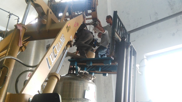 在這種持續(xù)氣溫高達到38度酷暑的環(huán)境下,物業(yè)公司經(jīng)理曹連會帶領(lǐng)員工利用天然谷公司休高溫假期間,到車間安裝攪拌器。